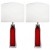 Pair of Nils Landberg for Orrefors Red and Clear Glass Lamps